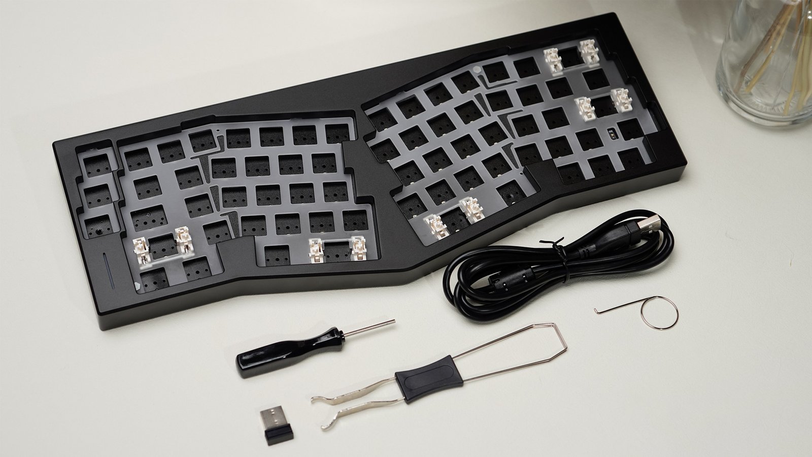 Your Record Alice V2 keyboard kit comes with everything you need to start building, except for switches and keycaps which need to be purchased separately: